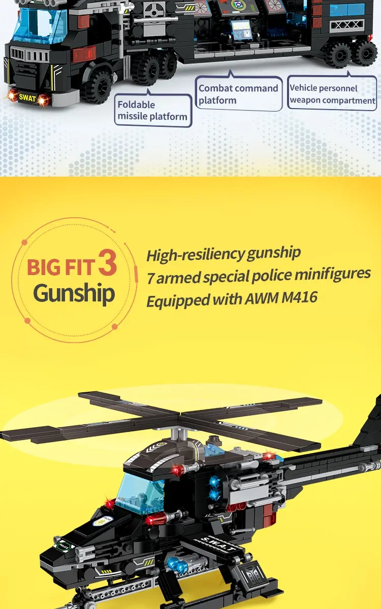 SWAT Police Station Truck Model Building Blocks City Machine Helicopter Car