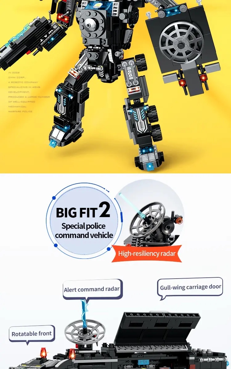 City Police Car Mobile Command Center trucks are equipped with artillery, radar, command rooms, missile launchers, prison cells and more cool police features! Police stations, helicopters, cruisers, missile vehicles, off-road police vehicles, artillery vehicles, patrol boats, frigates and spare parts. This 11-inch mobile command center truck makes the entire model even more impressive. Kids can maintain community peace and defend justice through role-playing games!
